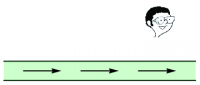 Figure 1: The symmetry argument used to show that the magnetic field points parallel to an infinite plane with a uniform current.Consider now the $z$-component, $B_z$. The Biot-Savart Law implies that reversing the direction of $\KK$ (everywhere) must also reverse the direction of $\BB$. Suppose that $B_z>0$ somewhere, as shown in the first diagram in Figure 1. Stand there, close your eyes, and spin around, and suppose you wind up facing in the opposite direction. On the one hand, the magnetic field can't change — you've moved, but it hasn't. This scenario is shown in the second diagram in Figure 1. Thus, $B_z$ must still be positive. On the other hand, you have no way of telling that you are now facing left rather than right; what you now see must be exactly the same as if the $xy$-plane had turned underneath you, reversing the direction of $\KK$, and hence also of $\BB$. By this argument, as illustrated in the third diagram in Figure 1, $B_z$ must now be negative! The only way out of this predicament is for the $z$-component of $\BB$ to vanish, that is, $B_z=0$.