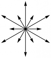 The root diagrams for the rank 2 Lie algebras $\aa_2$, $\bb_2$, $\dd_2$, and $\gg_2$ are shown in Figure 1. Each arrow represents a root; there are $|\gg|-|\hh|$ roots in all, since the Cartan elements are not included. The overall scale is a matter of convention, but the relative scale within each diagram is not. Further discussion of the construction of root diagrams can be found in [Wangberg and Dray] .