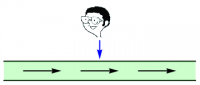 Figure 1: The symmetry argument used to show that the magnetic field points parallel to an infinite plane with a uniform current.Consider now the $z$-component, $B_z$. The Biot-Savart Law implies that reversing the direction of $\KK$ (everywhere) must also reverse the direction of $\BB$. Suppose that $B_z>0$ somewhere, as shown in the first diagram in Figure 1. Stand there, close your eyes, and spin around, and suppose you wind up facing in the opposite direction. On the one hand, the magnetic field can't change — you've moved, but it hasn't. This scenario is shown in the second diagram in Figure 1. Thus, $B_z$ must still be positive. On the other hand, you have no way of telling that you are now facing left rather than right; what you now see must be exactly the same as if the $xy$-plane had turned underneath you, reversing the direction of $\KK$, and hence also of $\BB$. By this argument, as illustrated in the third diagram in Figure 1, $B_z$ must now be negative! The only way out of this predicament is for the $z$-component of $\BB$ to vanish, that is, $B_z=0$.