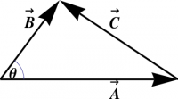 The definition of the dot product can be used to prove several familiar formulas. For example, consider Figure 2, in which $\CC=\BB-\AA$. Then \begin{eqnarray} \CC\cdot\CC &=& (\BB -\AA) \cdot (\BB -\AA) \nonumber\\ &=& \AA\cdot\AA + \BB\cdot\BB - 2 \,\AA\cdot\BB \end{eqnarray} or equivalently \begin{equation} \,|\CC|^2 = |\AA|^2 + |\BB|^2 - 2|\AA||\BB|\cos\theta \end{equation} which is just the Law of Cosines.