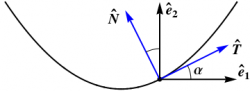 1) Do not confuse $\NN$ as used here with the principal unit normal vector $\NN$ in §Curves, which depends only on the curve. The normal vector $\NN$ defined above depends on the orientation of the surface, not the direction of bending of the curve.