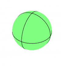 A curve with $\kappa_g=0$ is called a geodesic. It is clear from the definition that the geodesics in the plane are straight lines. What are the geodesics on a sphere? A curve on a sphere that does not bend to the left or right is surely a circle, and we can assume without loss of generality that it is a circle of constant latitude. (Why?) The geodesic curvature therefore vanishes if \begin{equation} 0 = d\phat\cdot(-\that) = \cos\theta\,d\phi \end{equation} which is only true at the equator, where $\theta=\pi/2$. Thus, the geodesics on the sphere are great circles, as shown in Figure 2.