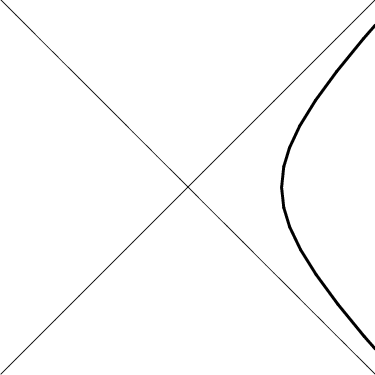 Trajectories of uniform acceleration are therefore given by \begin{eqnarray} x &=& \frac{c^2}{a} \,\cosh\beta \\ t &=& \frac{c}{a} \,\sinh\beta \end{eqnarray} In other words, uniform acceleration corresponds to worldlines which are hyperbolas, as shown in Figure 13.6. These hyperbolas are just our old friends, “circles” of constant distance from the origin! We now discuss the physical implications of their geometric properties.
