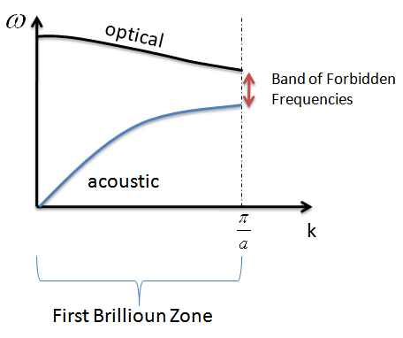 - Between the two branches, there is now a band of vibrational frequencies that are forbidden in the oscillator.