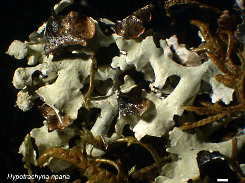 These species are found on rock in streams. Although submerged much of the year, they have some degree of tolerance of being exposed during the dry season. This is especially true of the Dermatocarpon and Leptogium listed below. Examples: