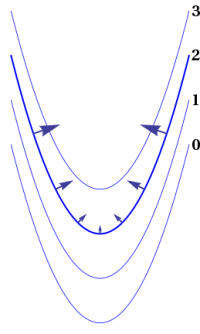 This orthogonality is shown for the case of level curves in Figure 1, which shows the gradient vector at several points along a particular level curve among several. You can think of such diagrams as topographic maps, showing the “height” at any location. The magnitude of the gradient vector is greatest where the level curves are close together, so that the “hill” is steepest.