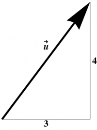 For example, the components of the vector $\uu$ above in Cartesian coordinates are shown in Figure 2. Recalling that $\uu$ referred to your velocity, this example corresponds to your moving at 3 mph to the east and 4 mph to the north, for an overall velocity of 5 mph in the direction \[ \frac{\uu}{|\uu|} = \frac35\xhat + \frac45\yhat \] (which could also have been specified as a compass direction).