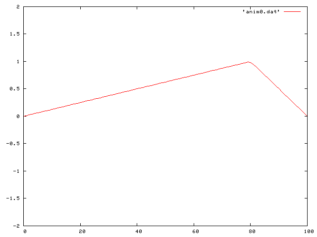Note how the wave is decreasing in time. I also looked at the case of the single pluck, but where the coefficient of friction is negative. In this case the wave increases in size. This case is unphysical and violates our condition of small oscillations.