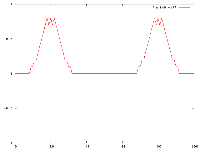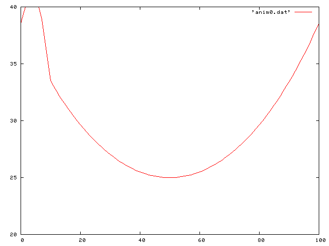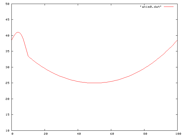 Here is the case of the initial configuration being that of a cosh function offset from the relaxed position: